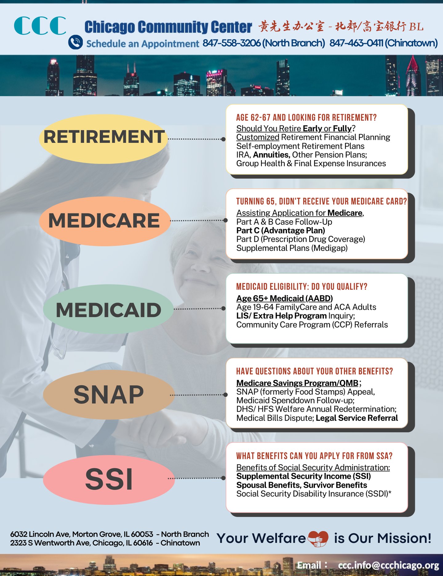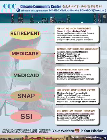 With a dedicated focus on maximizing benefits for seniors, CCC is committed to advocating for the retiree, aged, and disabled population in Chicago.